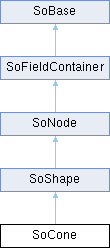 The SoCone class is for rendering cone shapes. More...
